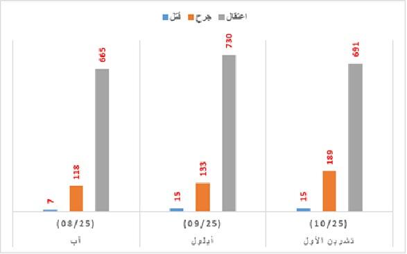 التقرير الشهري الخاص باعتداءات قوات الاحتلال ومستوطنيه على شعبنا الفلسطيني خلال شهر تشرين الأول \ أكتوبر سبتمبر 2025