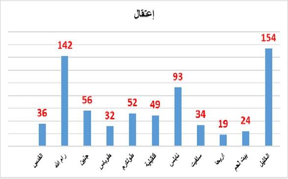تم اعتقال 691 مواطناً بمحافظات الضفة كان من بينهم 21 طفل ، مواطنة، 2 من المسنين، مواطن من ذوي الإحتياجات الخاصة، و9 من بين العسكريين وتركزت عمليات الاعتقال بمجملها على التوالي بمحافظات الخليل، رام الله، نابلس، جنين، طولكرم و قلقيلية |