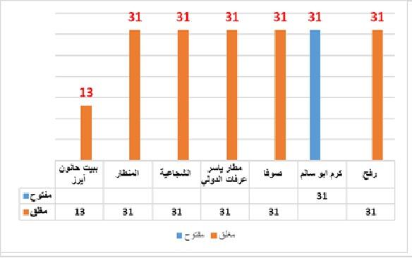 - الإغلاق الكلي للمنافذ الدولية وللمعابر مع إسرائيل :