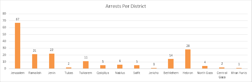 During the month of April 2020, the Israeli military arrested 189 Palestinians (189 in the West Bank and 40in the Gaza Strip). The majority of arrests took place in the districts of Jerusalem (67); Ramallah (21); Jenin (22); Tubas (2); Tulkarem (11); Qalqiliya (5); Nablus (6); Salfit (5); Jericho (1); Bethlehem (14); Hebron (28),North Gaza (4), Central Gaza (2) and Khan Yunis (1) Among those arrested by the Israeli military were 9 children, The Palestinian Authority Governor of Jerusalem, Palestinian Authority Minister of Jerusalem Affairs, 2 University students and 1 Security Force Officer. |